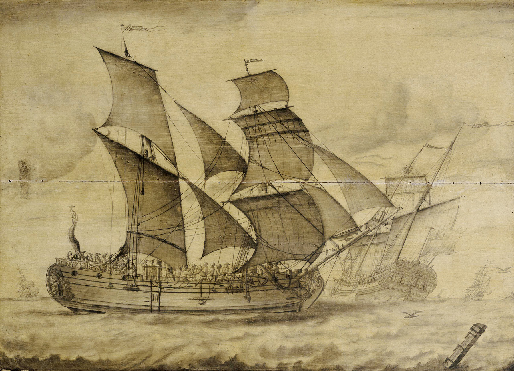 Drawing of an English brigantine ship from 1725. Credit: National Maritime Museum, Greenwich, London
