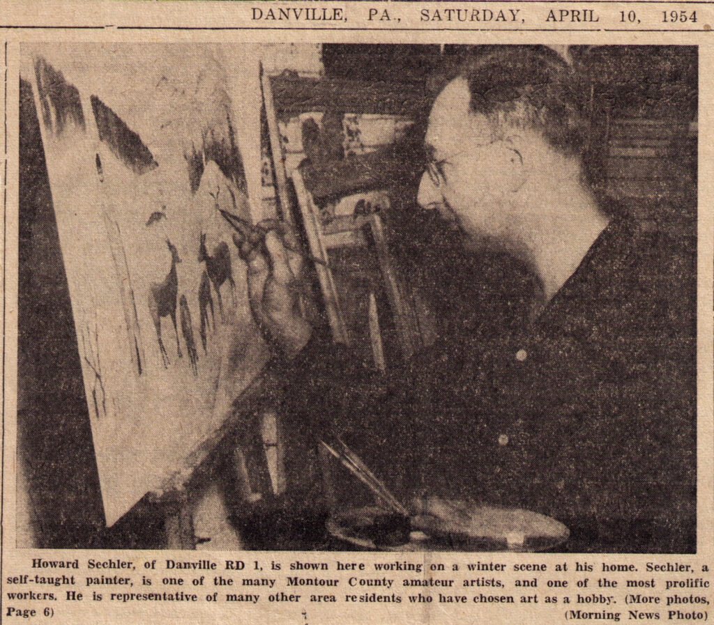 Along with Howard’s and Andrew’s reputation as quiet, bachelor farmers with a house filled with antiques, Howard is remembered as an artist—a painter of landscapes and flowers. Upon the death of his youngest brother Harold, to whom my father was not only a first cousin but also a good friend, I selected three of Howard’s paintings as my own which Harold had in his home (Harold was also a bachelor farmer). The recipe book and the news clipping which appears in this article were the documents that led me to want to share one of Howard’s paintings.