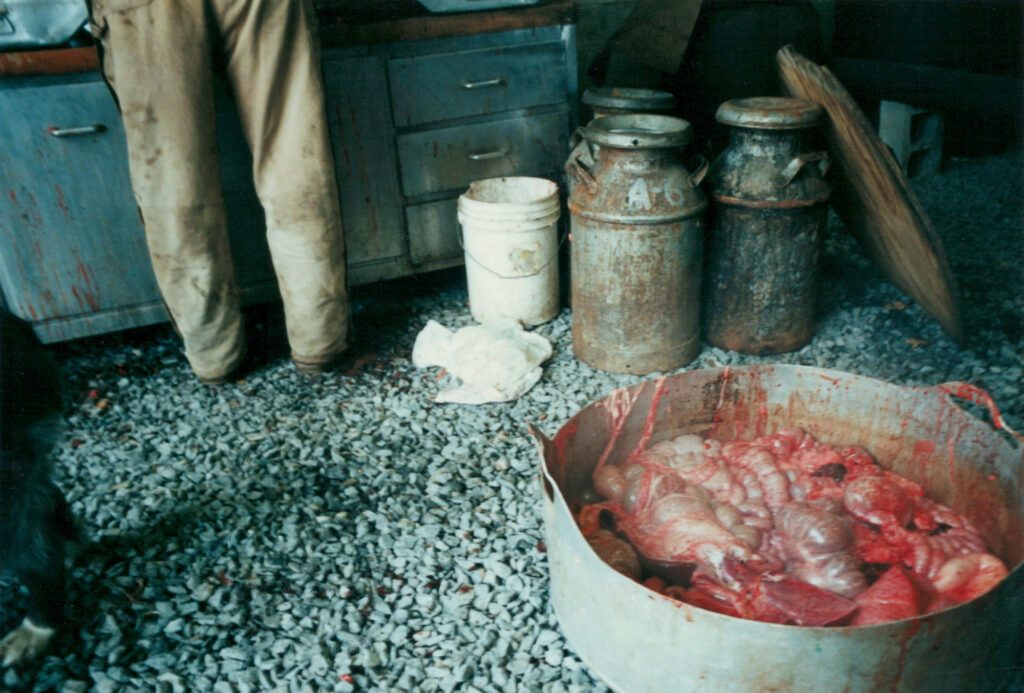 In 2001, I was in college and had been studying photography for a few years. On the day of the butchering, I brought along my camera and a roll of film to document the process. Unfortunately, those images went missing for several decades. Then, a few weeks ago, I found them while sorting through a box of old papers.