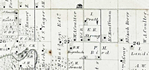 Now we have come full circle to Charles Edward Hagenbuch’s parents who were both born in Pennsylvania: Aaron (b. 1810, d. 1892) and his wife, Rachel (Hill) (b. 1818, d. 1889). As mentioned, they came to Michigan in 1839 and farmed. They had a large family of nine children, five of whom were married. The children are: Mary Emma (b. 1838, d. 1928, m. Oliver Harwood), Amos (b. 1840. d. 1842), Frederick (b. 1844, d. 1910, m. Ardell Richards), Martha (b. 1847, d. 1847), Catherine (b. 1848, d. 1854); Samuel B. (b. 1850, d. 1921, m. Rosa Fox), Flora Belle (b. 1854, d. 1925), Peter Franklin (b. 1857, d. 1887, m. Mary Harwood), and Charles Edward (b. 1860, d. 1920, m. Catherine “Kate” Bonebright). Parents Aaron and Rachel are also buried in Constantine Township Cemetery. As an added note, Rachel is the sister of Daniel Hagenbuch’s (b. 1803) wife Elizabeth Hill. Daniel is a descendant of the youngest son of Andreas, John (b. 1763). So, the Hill sisters married Hagenbuch cousins.